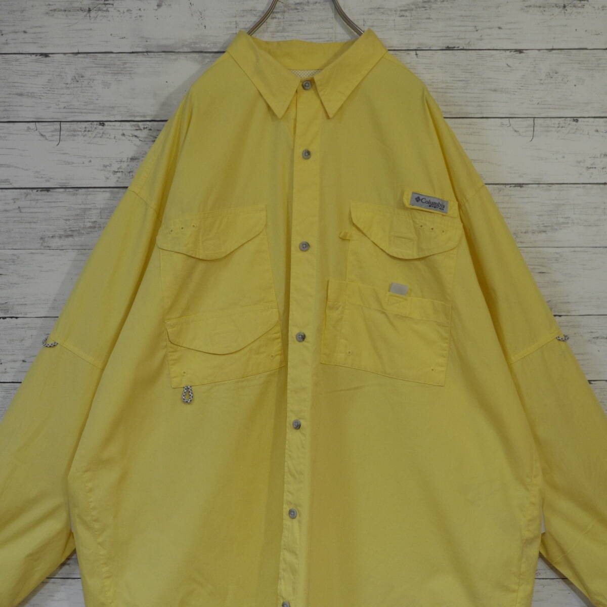 - Columbia コロンビア PFG PERFORMANCE FISHING GEAR フラップポケット 長袖ボタンダウン BD フィッシングシャツ XL イエロー 黄色 20202701