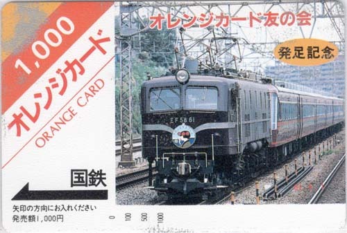 - 国鉄 オレンジカード友の会 発足記念 オレンジカード 未使用
