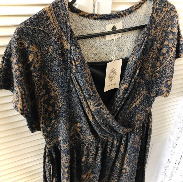 - 新品 bou jeloud ネイビーブラック×ブロンズ リボンワンピース 単品 秋冬 Free