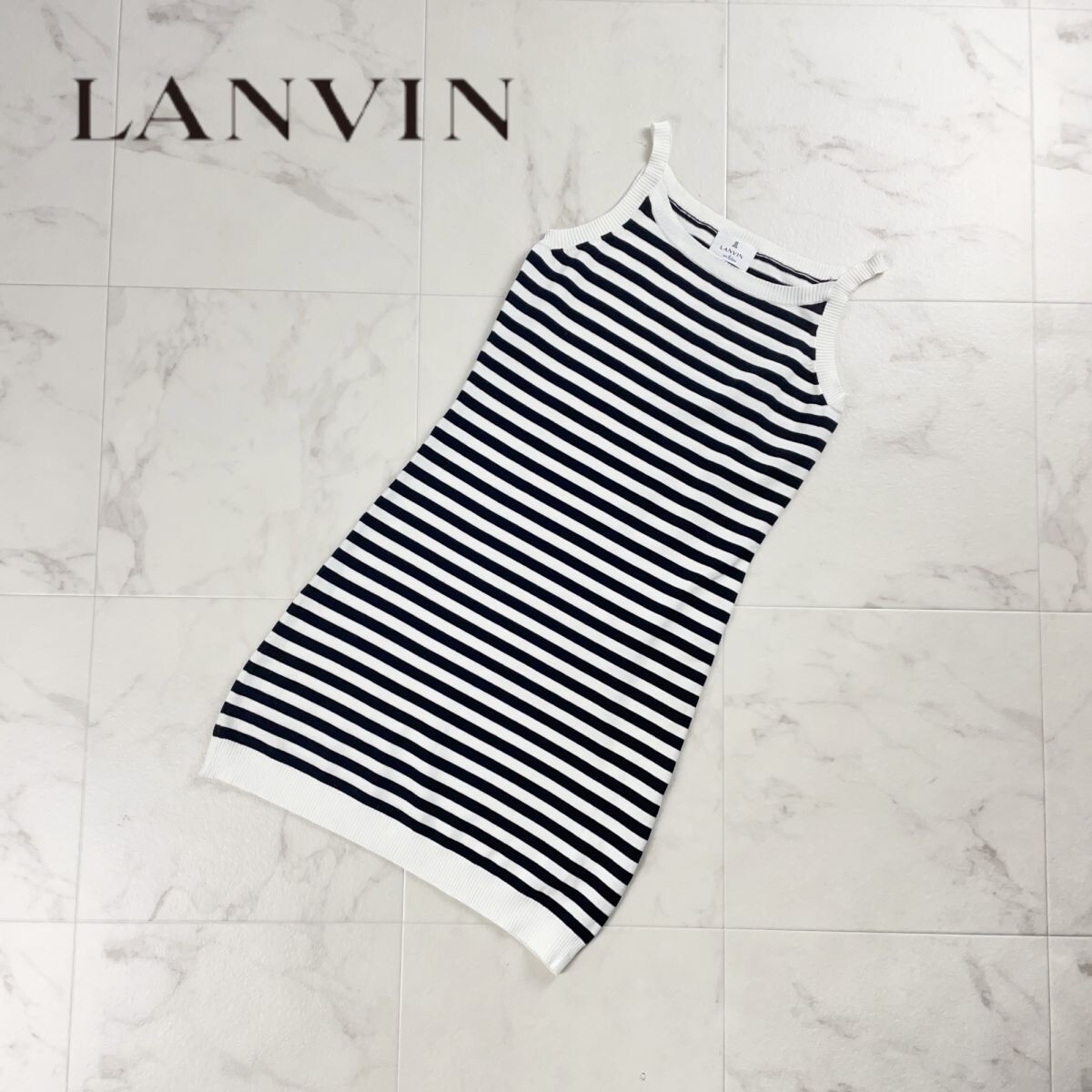 - 美品 LANVIN en Bleu ランバンオンブルー ボーダー柄ニットキャミソールトップス レディース 白 黒 サイズM*SC1199