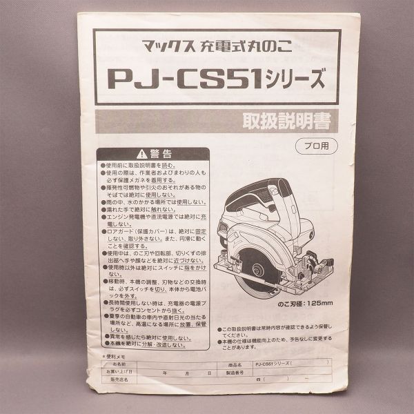 - マックス MAX PJ-CS51 取扱説明書 125mm 充電式丸のこ 丸鋸 MAX 管17552