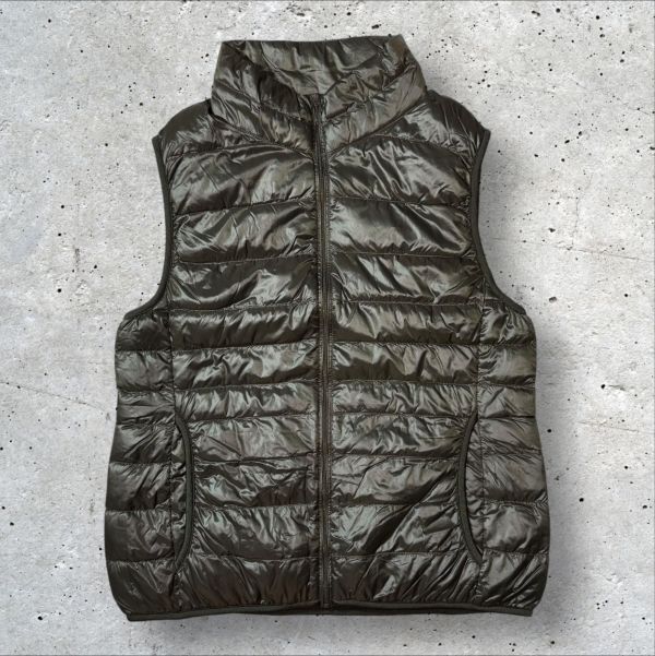 > ★ダウンベスト★UNIQLO sizeL カーキ系 アウター インナー ジャケット レディース ユニクロ ウルトラ クリーニング プレス済み USED 1696