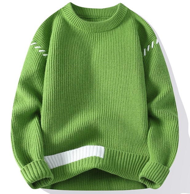 - 新作 秋冬 ニット セーター メンズ プルオーバー カットソー クルーネック 紳士 配色 アウター カジュアル 緑/2XL