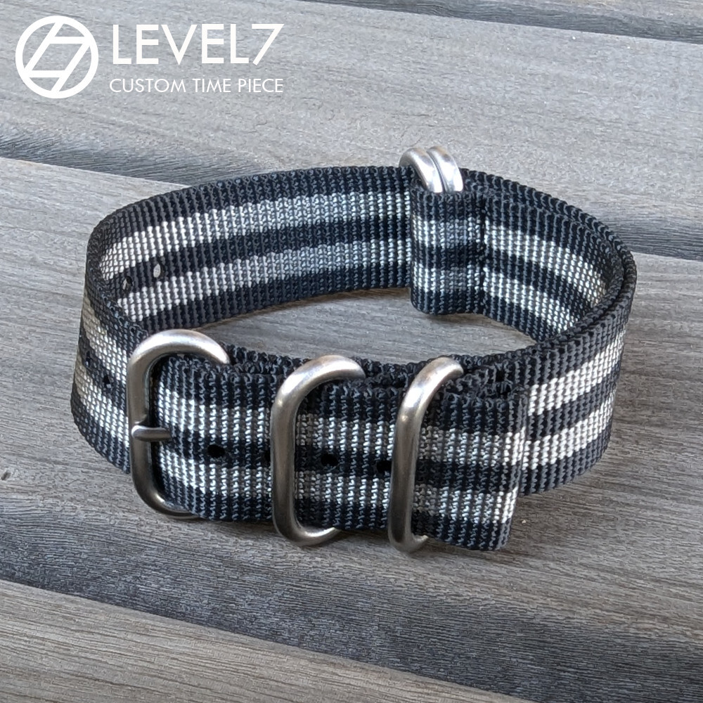 - 【ラグ幅:22mm】ZULU ナイロンベルト/ストラップ グレー ボンド プレミアムナイロン使用 全長約280mm ブラッシュ シルバーリング LEVEL7