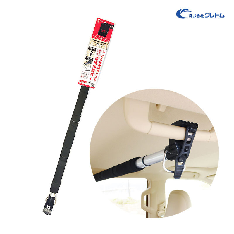 - インテリア・バー プラス ブラック 車中泊 伸縮バー 車内 上着掛け 専用ベルト付 キャンプ・アウトドア等に 収納 車内積み クレトム LS-3