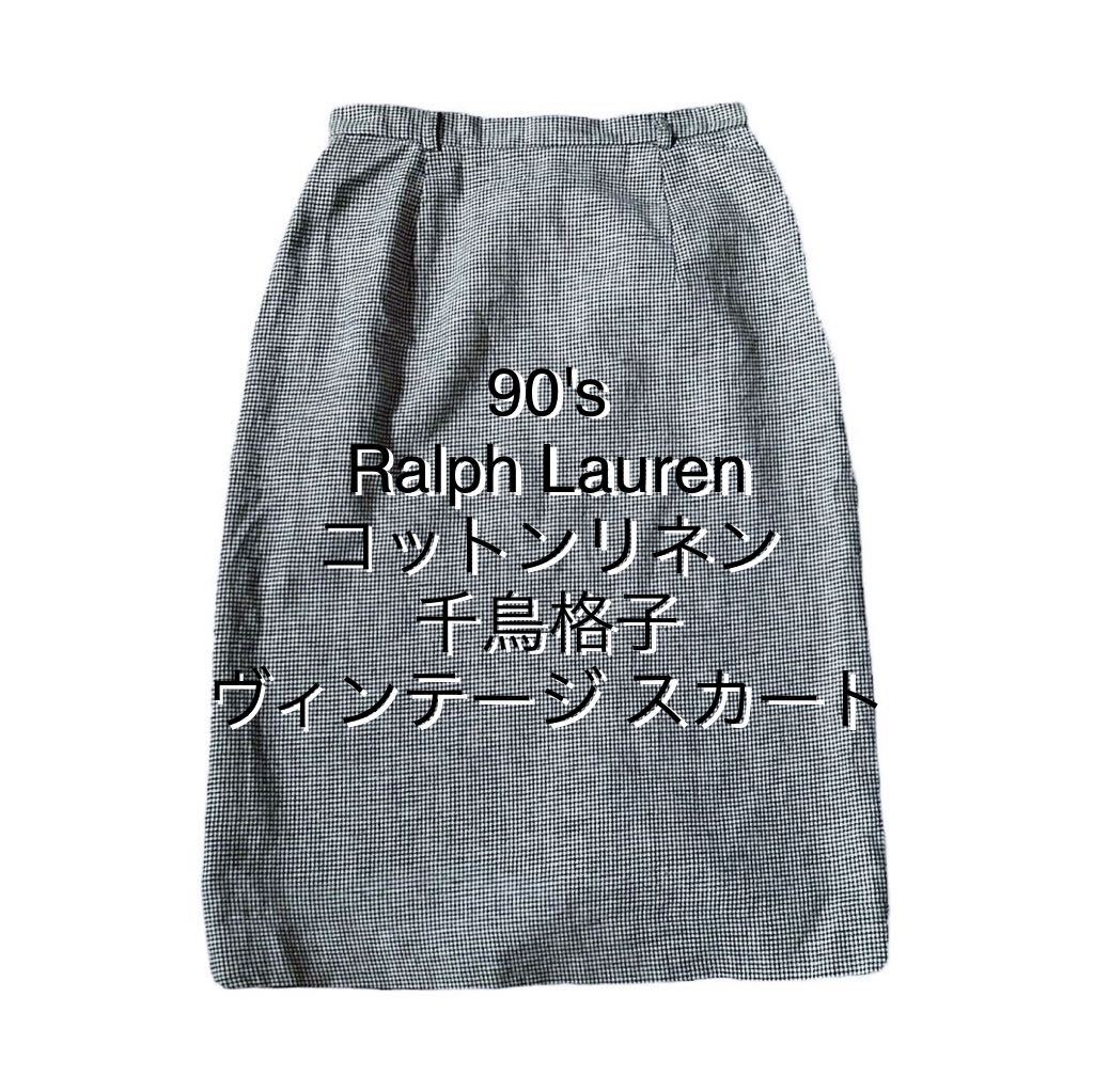 > 90's Ralph Lauren ラルフローレン ヴィンテージ スカート 千鳥格子 コットン リネン 麻 ミモレ丈 ミディ丈 総裏 キュプラ POLO USA