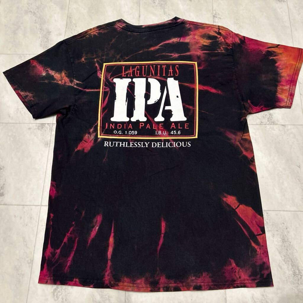 > 00s Hanes LAGUNITAS IPA INDIA PALE ALE RUTHLESSLY DELICIOUS タイダイ ブルドック 両面 プリント ビンテージ 半袖Tシャツ