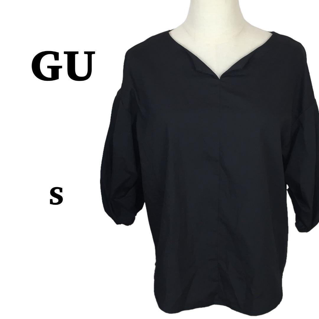 - C0328 ①GU ジーユー【S】長袖Tシャツ シンプル Vネック訳あり】オシャレ ブラック