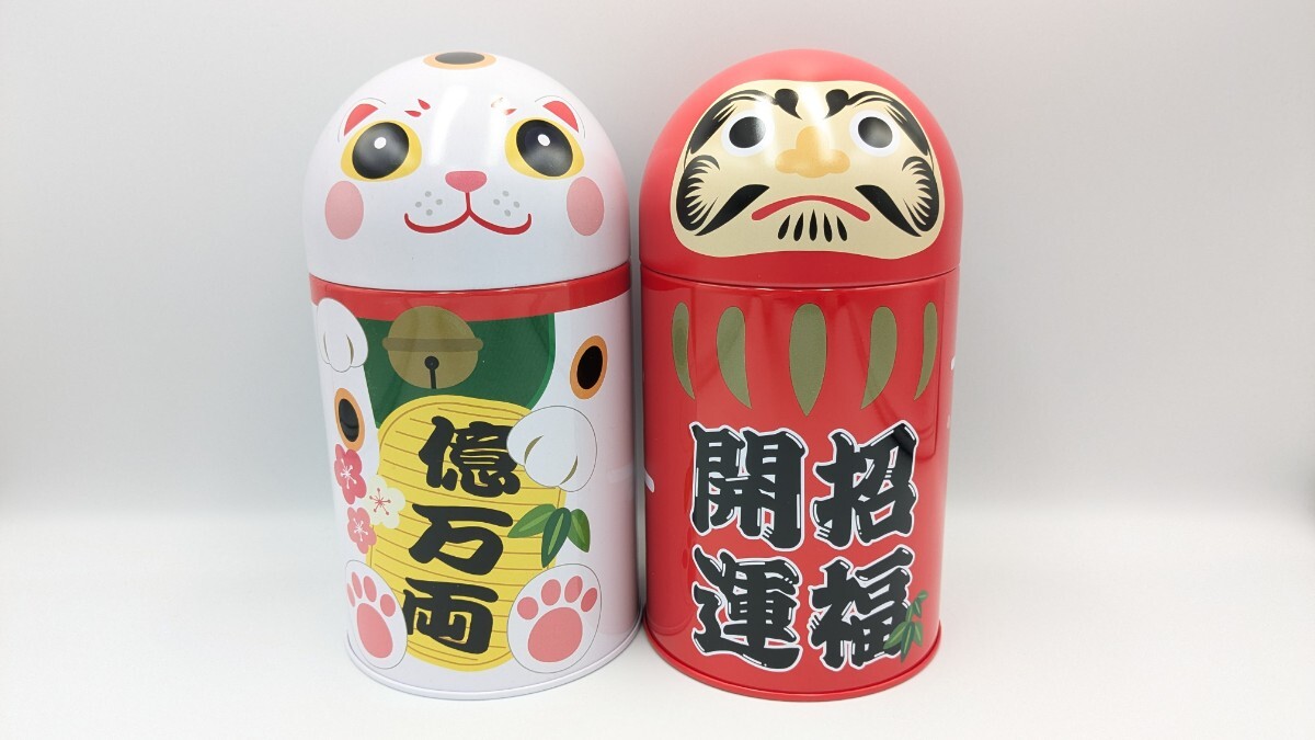 - 縁起物 招き猫の空き缶 だるまの空き缶 小物入れ おみやげ じゃぱん缶