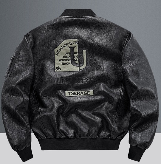 - 新作 フライトジャケット PUレザー メンズ 刺繍 ブルゾン アウター ライダース 野球服 カジュアル 防寒防風 黒/XL