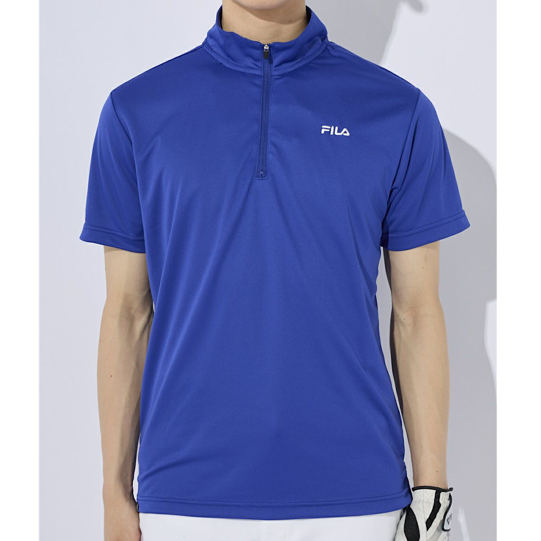 - 新品 フィラ ゴルフ ハーフジップ 半袖 シャツ LLサイズ 青 ブルー 742-687Y ジップアップ 吸汗速乾 UVカット メンズ ゴルフシャツ 742687Y