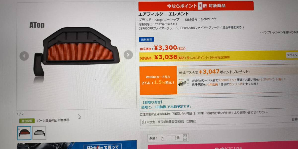 - ★CBR929RR SC44 純正エアフィルター 中古