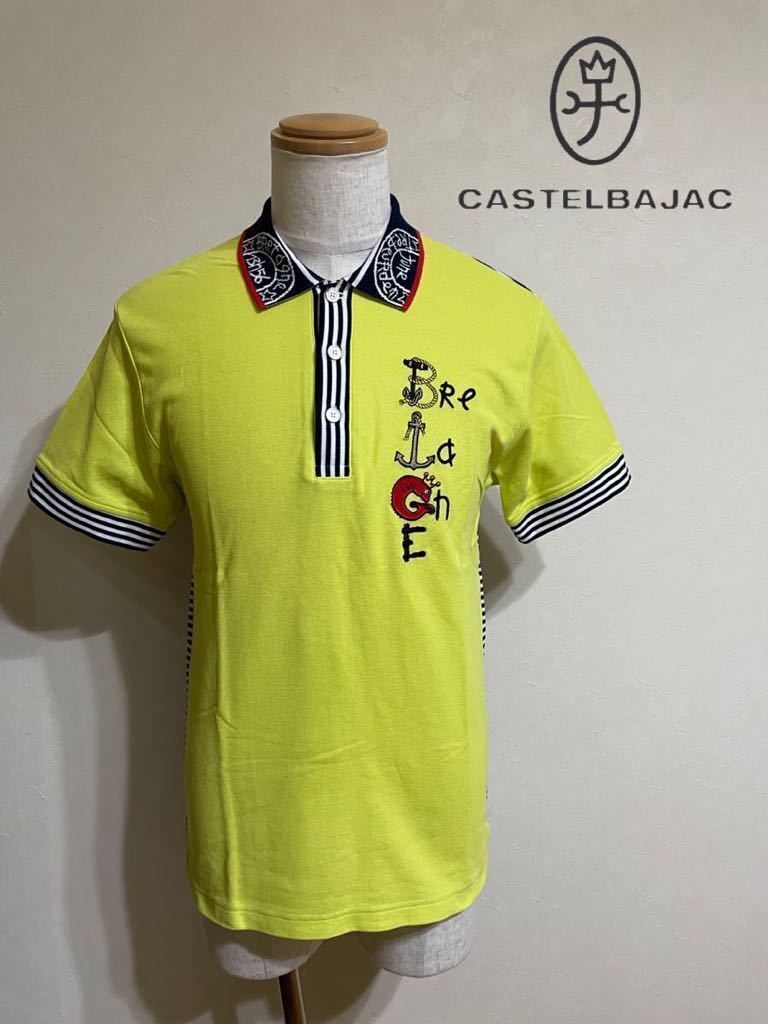 - 【美品】 CASTELBAJAC GOLF カステルバジャック ゴルフ 鹿の子 ドライ ポロシャツ トップス サイズ2 半袖 イエロー ネイビー 白 日本製