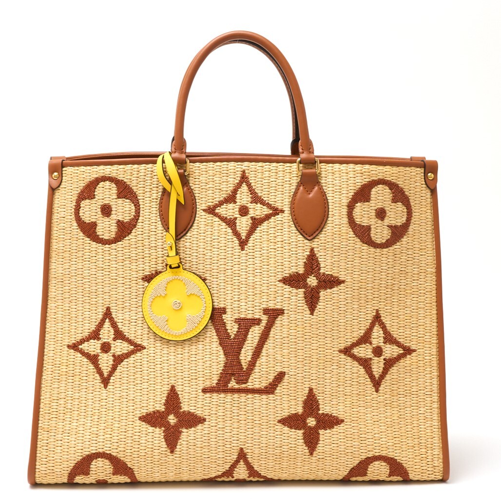 > LOUIS VUITTON ルイヴィトン オンザゴー GM M57644 2WAY ハンド トートバッグ モノグラム・ラフィア×レザー ベージュ×ブラウン