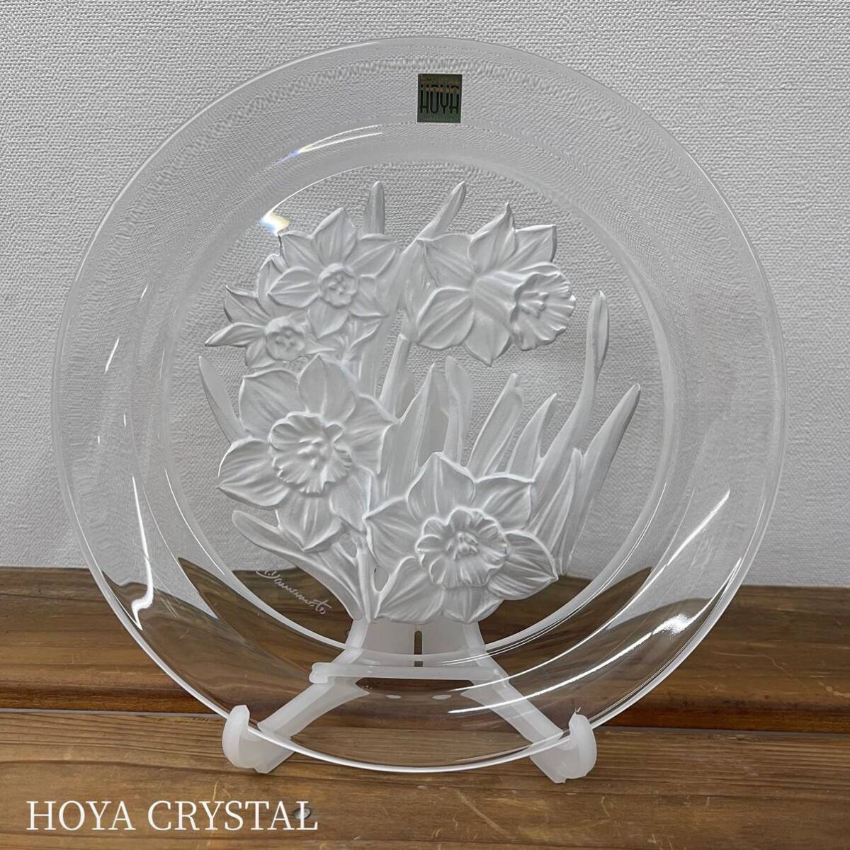 > HOYA CRYSTAL ホヤ クリスタル 「クリスタルレリーフ皿」 飾り皿 裏彫り 直径 約 21cm 管S-35