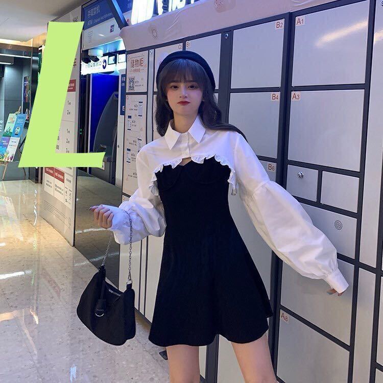 > ワンピース アシンメトリー ミニスカート ミニワンピース セットアップ 上下セット 2点セット キャミワンピ キャミソール トレンド 黒 L
