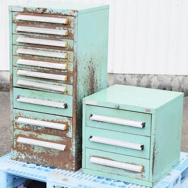 - 【新潟発】OS パーツキャビネット 3段 10段 鍵付き スペアあり マスターボックス 部品入れ 小物保管 物品棚 整理 部品棚 収納庫 工具 中古
