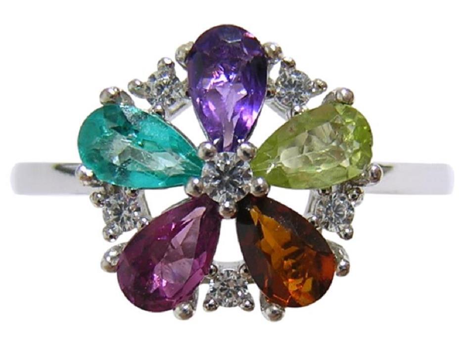 > 『天然マルチカラーストーン』 14号 デザインリング 指輪 アメジスト ペリドット ガーネット ロードライトガーネット トパーズ