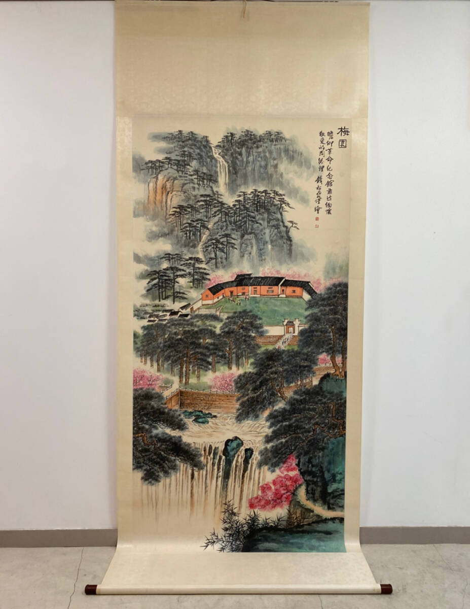 - 古美術 掛け軸 中国・近現代 「銭松岩書」 紙本 【梅園図】 立軸 書道 巻き物 真筆逸品 肉筆保証 唐物 古画 LT-2409202
