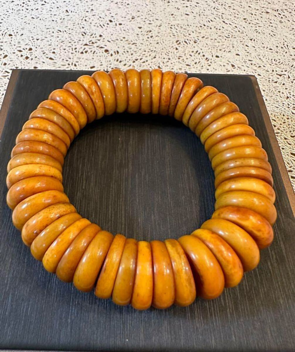 - T-034 文玩 チベット ラクダの骨 希少 大腸型 開運 ブレスレット