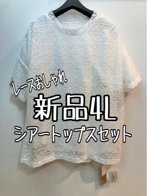 - 新品☆4L♪白系シアー透かし編みトップス&Tシャツをセットで♪☆b558