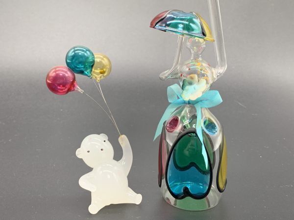 - 【海外土産品】ガラス工芸 ヨーロッパ土産 『ガラス工芸品2点』 インテリアオブジェ/置物/飾り物 L0527H