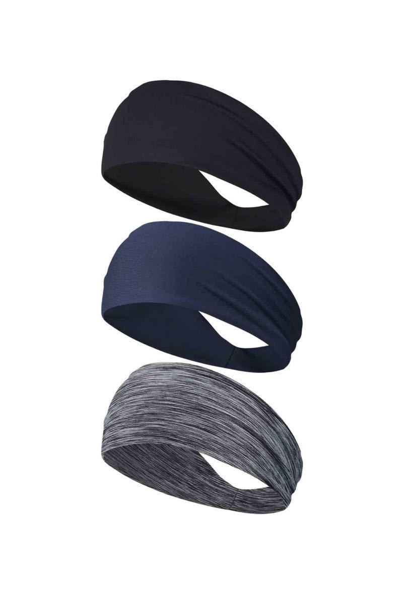 > ヘアバンド メンズスポーツ ヘッドバンド メンズ ヘアターバン バンダナ 幅広汗止め 吸汗速乾 ランニング サッカー 野球 髪留め3枚伸縮性