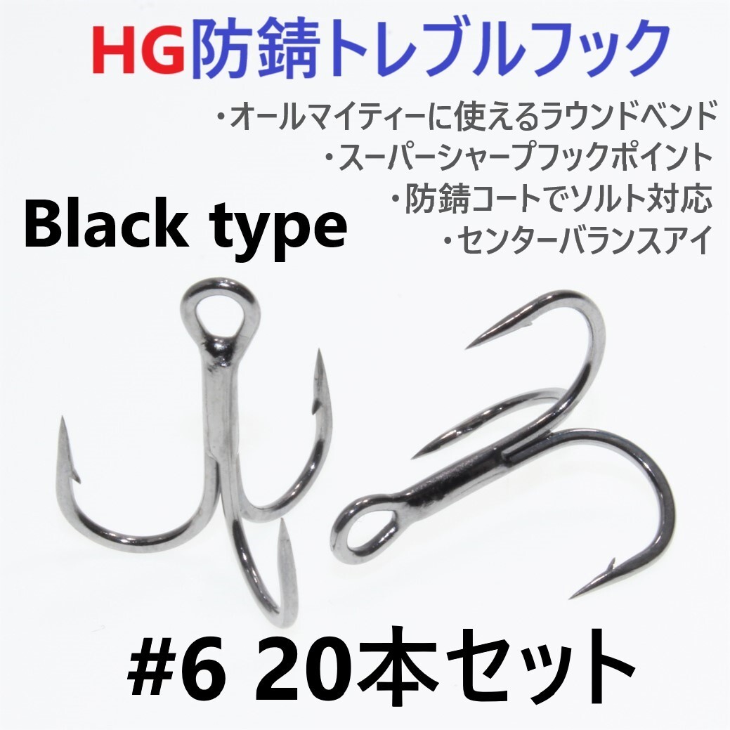 > 【送料150円】ハイグレード防錆トレブルフック ブラック #6 20本セット 高品質ルアーフック がまかつトレブル13好きに