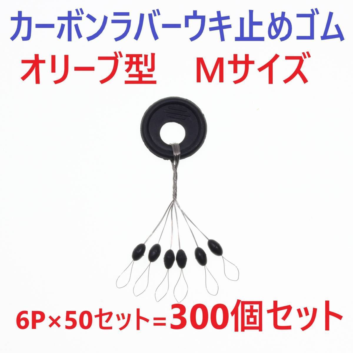 - 【送料150円】カーボンラバー 浮き止めゴム 300個セット Mサイズ オリーブ型 ウキ止め シンカーストッパー