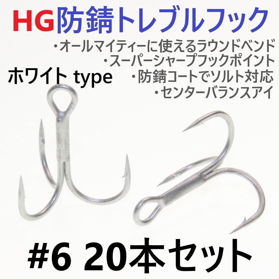 > 【送料150円】ハイグレード防錆トレブルフック ホワイト#6 20本セット 高品質ルアーフック がまかつトレブル13好きに