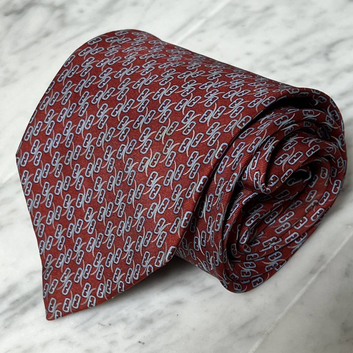 - 999円~ FENDI ネクタイ レッド系 ズッカ FFロゴ パターン柄 総柄 (R5)