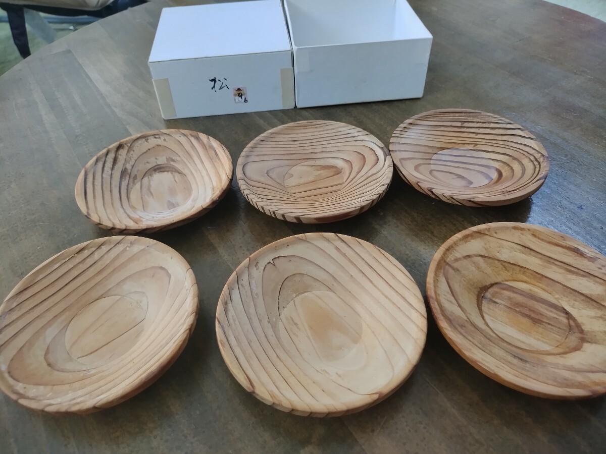 - きよし作★松★ ハンドメイド茶托 木製 6客 煎茶道具 無垢 天然木 自然 8.5 マツ