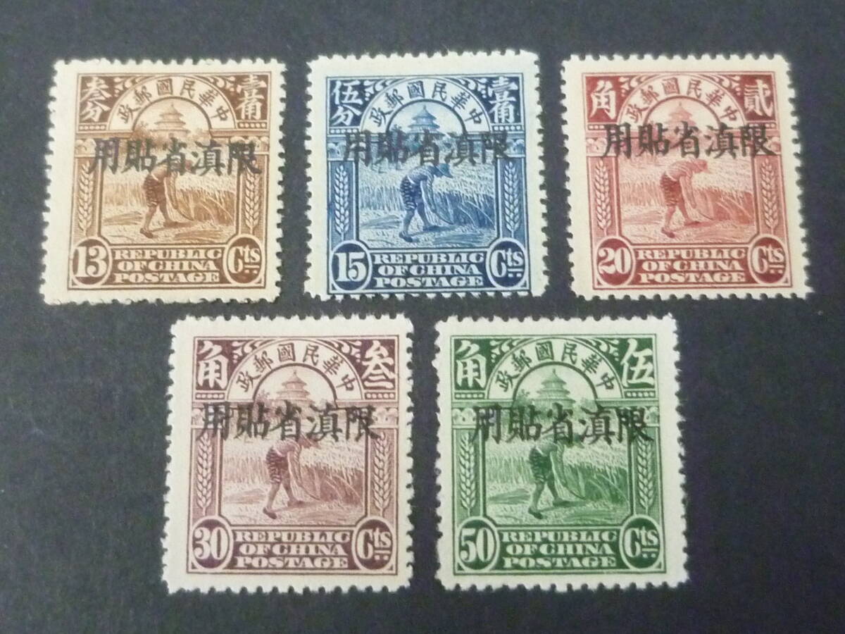 > 25 M №56 旧中国切手 雲南省 1926年 JPS#YN12-17の内 北京新版帆船 13c-17c 計5種 未使用OH・VF ※説明欄必読