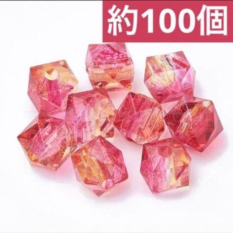 - ピーチ ストロベリー ピンク×オレンジ スクエア キューブ ビーズ 約100個