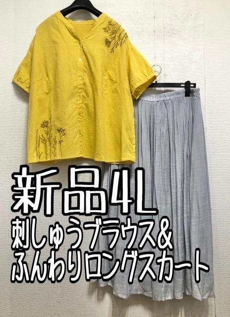 - 新品☆4L♪フェミニン刺しゅうブラウス&ロングスカート♪☆b965