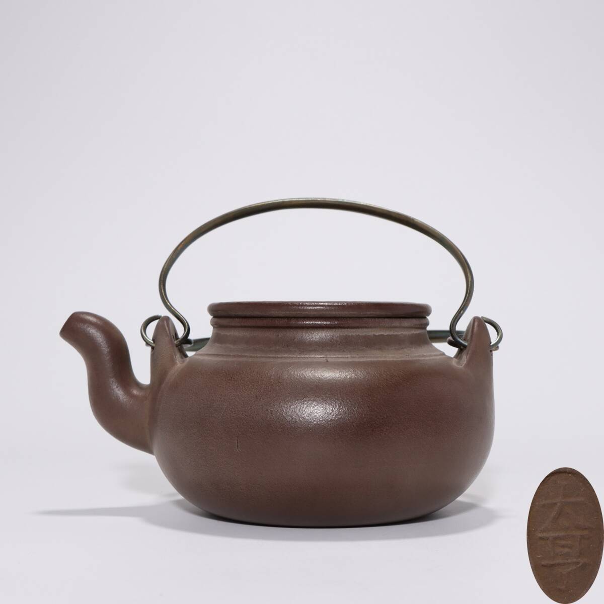 - 古陶芸 紫砂壷 清時代 【大亨】 製 「銅提梁卵包壺」 紫泥 煎茶 急須 茶道具 唐物 時代物 茶器 LT-241035