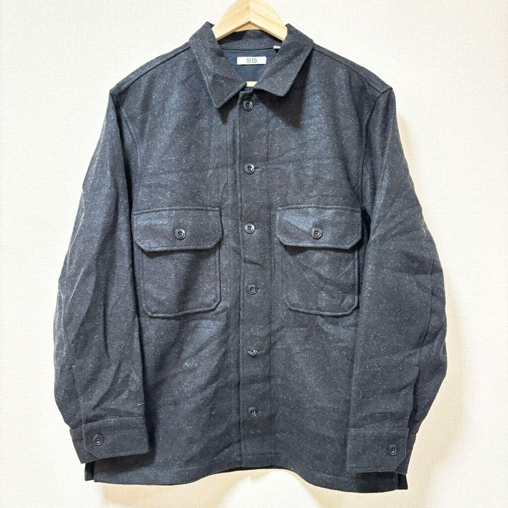 - トレンド感◎【Uniqlo U】ユニクロ ユー カバーオール ダークグレー シャツ ジャケット CPO ウール フリース メンズ サイズL/Y18175SS