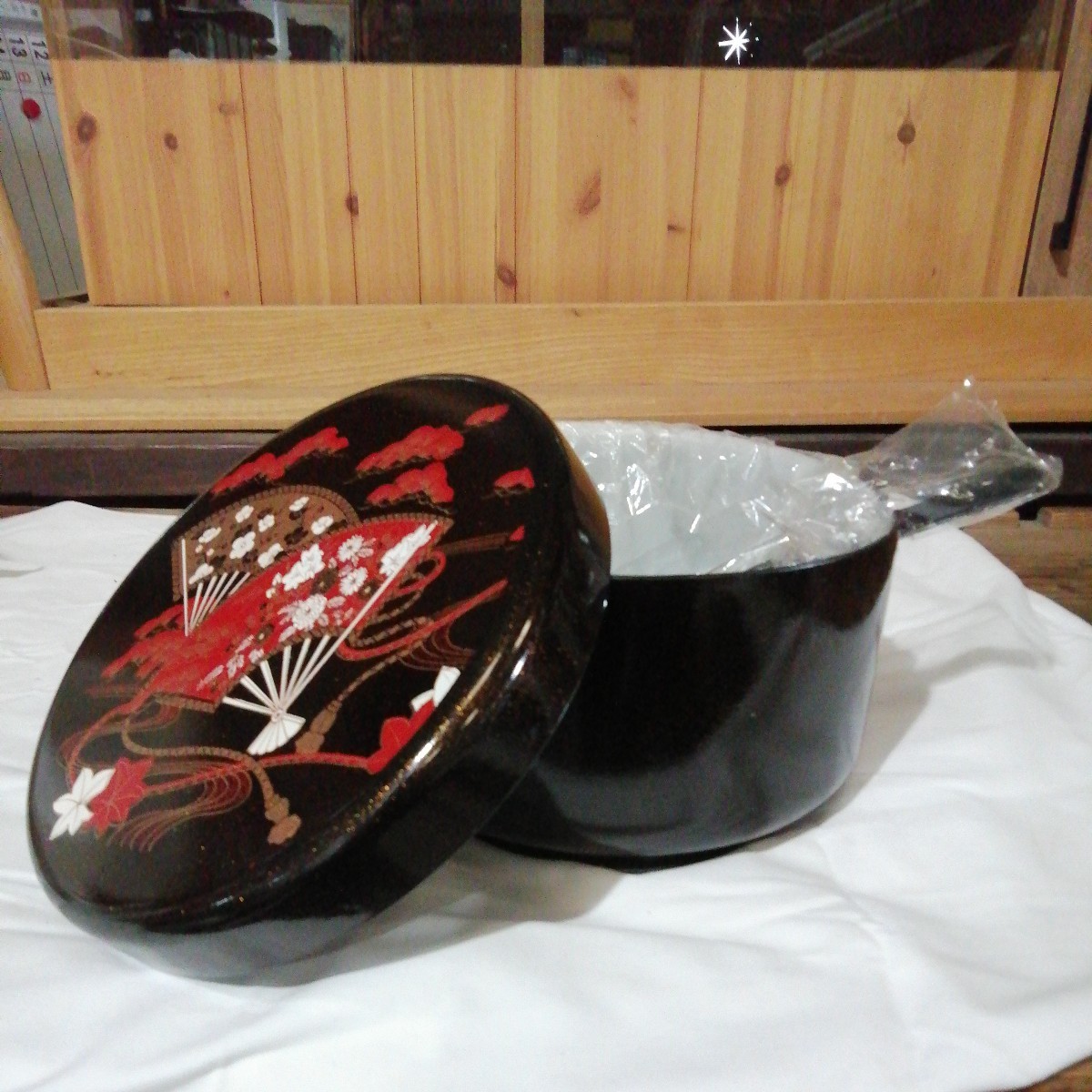 - お櫃 おひつ 飯器 金 扇子 和風 日本 紅葉 しゃもじ 飯台 未使用品 (約直径23.5×高13.5cm)