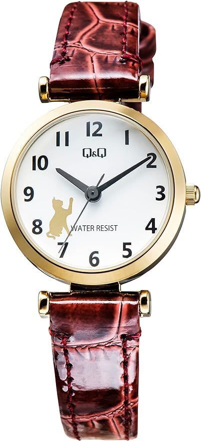 - CITIZEN Q&Q 腕時計 アナログ ネコ 防水 球面ガラス 革ベルト Q03A-001PK レディース ブラウン 猫 シチズン キューアンドキュー