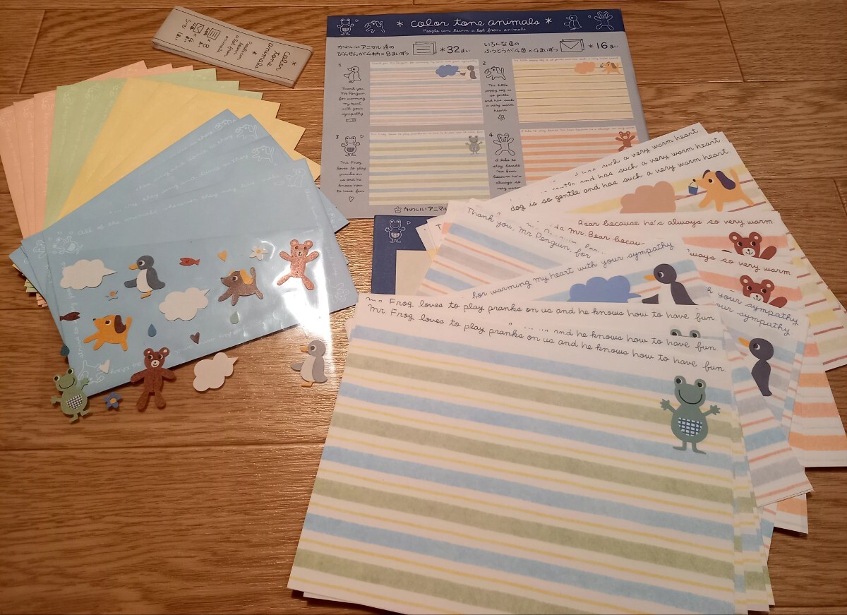 - 即決☆平成レトロ☆ファンシー 動物絵柄 レターセット シール付き カミオジャパン カエル ペンギン 犬 クマ カミオジャパン 90年代初期