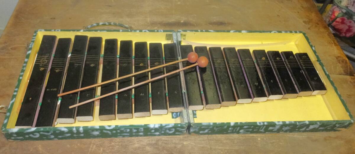 > ★ こ-551 木琴 A-440 音板18 レトロ 打楽器 折りたたみ 持ち運べる 中古 箱型 箱開寸)長さ23cm 幅60cm 高さ3cm 重さ1.4kg