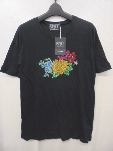 > 【KCM】sta-578★未使用品★【KNIT by KEITA MARUYAMA/ケイタ マルヤマ】 レディース 花刺繍 半袖Tシャツ ブラック サイズ 01