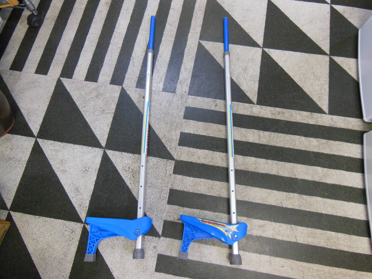 - 「中古品」竹馬 たけうま 青色 サイズ調節式