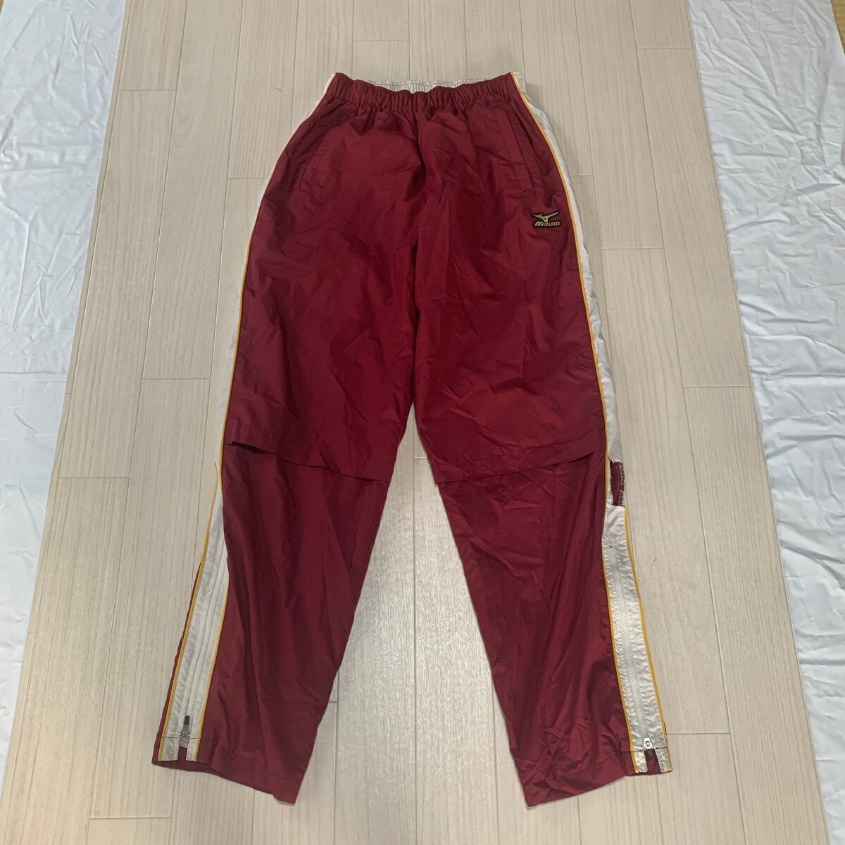 > MIZUNO Proミズノ プロ ナイロンパンツ ジャージ サイドファスナー ワンポイント ボルドー サイズL
