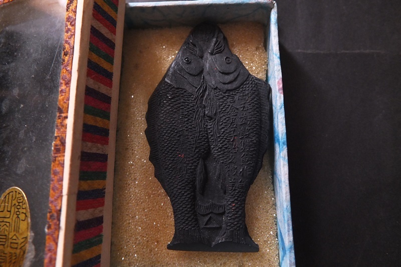 - # 古墨 唐墨 双魚 曹氏素功製 11g 時代墨 文房用具 書道書画#