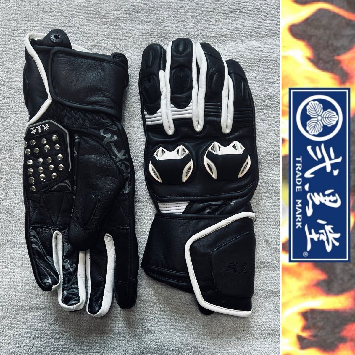 > ★正規 弐黒堂 WBGN-223 BLACK/WHITE Mサイズ にこくどう ハードライドレザーグローブ バイク 手袋 牛革 スマホ対応 定価12980円 A61014-19