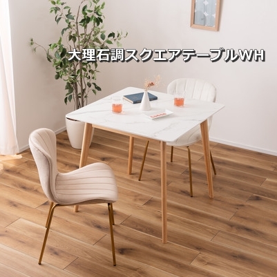 > ダイニングテーブル スクエアテーブル 大理石調 おしゃれ 幅80 正方形 2人用 角テーブル 食卓 TAP-202 WH