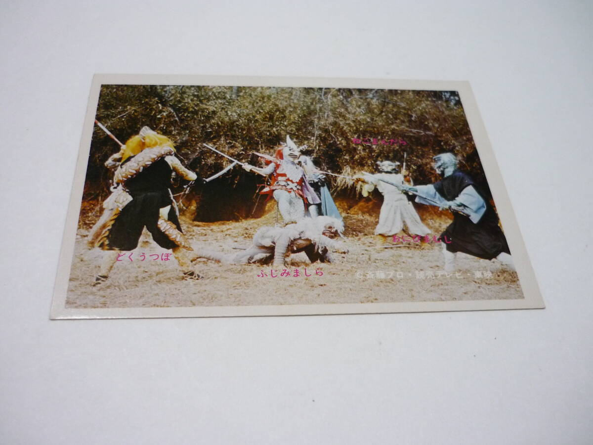 - [管00]【送料無料】カード 駄菓子屋 そくうつぼ ふじみましら おにびまむし ねこまんだら 変身忍者嵐 東映 斉藤プロ 当時物 ブロマイド L版