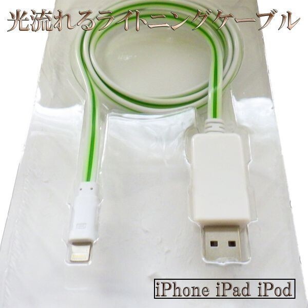 - 【80cm 白/緑】 送料無料 送料込 iPhone7 iPhone7 iphone6 Plus iPhone5 iPad Air iPod 光る 流れるライトニングUSBケーブル