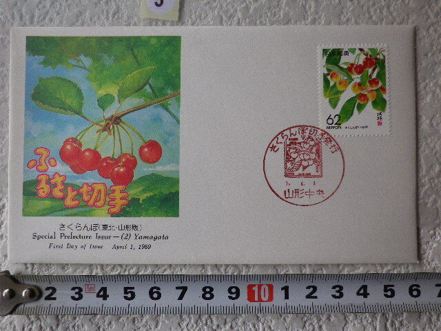 - FDCふるさと切手 さくらんぼ・山形 1貼1消 解説書有●5●